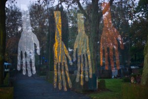 In 2013 toonde ik doorzichtige handen. Zij representeren de gedachte dat de voorouders nog lang beslag leggen op de gedachtes van de levenden.