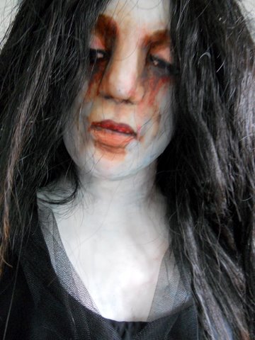 De vrouw is afgebeeld met rondom haar bollen garen die in de hand passen, zoals voorgeschreven door de sharia.